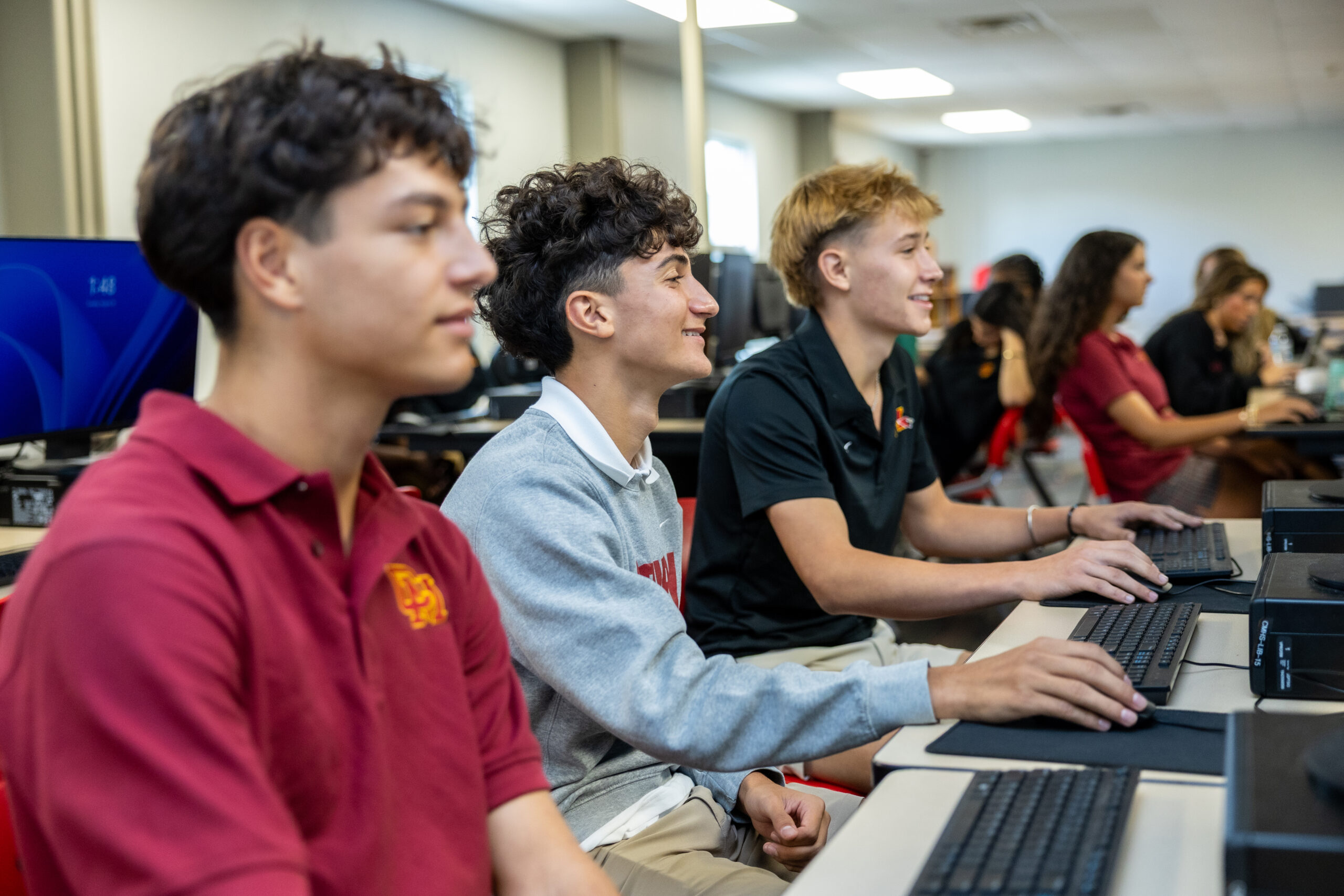 Seniors: Dimitri Zoumis, Mihali Frangos, and Pierce Jones in AP Comuputer Science, taken by Natalie Blasko.