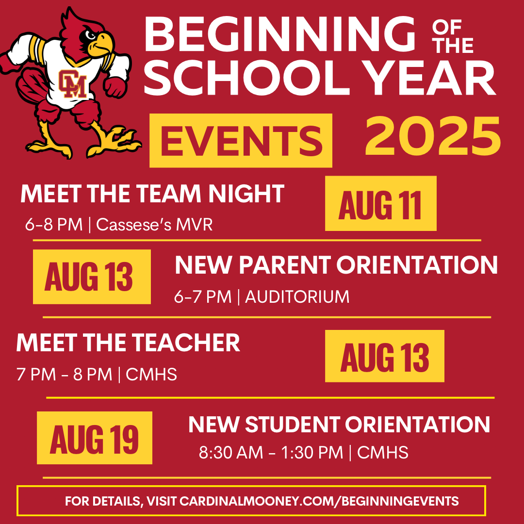 Hey, Mooney Family! 🎃Get ready for a Halloween adventure on the CMHS campus! Join us for a family-friendly Trick-or-Treat Event where grade school students can stop by different classrooms hosted by our clubs and departments, collect some sweet treats, and show off...