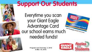 Soon enough you’ll be shopping for all 7 of the fishes and gassing up the SUV for a trip to grandmother’s house. Why not help our CMHS students while you do both? Cardinal Mooney has partnered with Giant Eagle in their Apples for Students Campaign. Simply Shop, Scan, and Support Our School. This program is a great way for our school to earn funds for our overall educational needs. Is your Giant Eagle Advantage Card® registered? Now’s the time to check. All you need is our school code 0145 to verify a card or register a new card. Go to https://www.gianteagle.com/about-us/in-your-community/education/apples-for-students to register your card and start supporting Cardinal Mooney! The Apples for Students Campaign will run through March 2019 so be sure to register today!