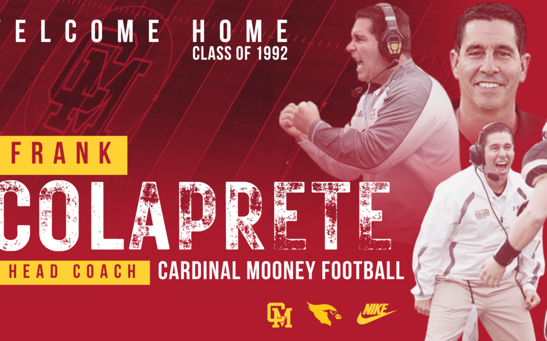 “We are thrilled to welcome Frank Colaprete back to Cardinal Mooney as our new head football coach,” said Nick Beyer, president/principal of Cardinal Mooney. “Frank has deep roots in this community and a legacy of football excellence that spans generations. He has proven himself as a dynamic leader and mentor, and we are confident he will continue to build on the proud tradition of Mooney football while elevating our entire athletic program. His experience and understanding of what makes Cardinal Mooney special will be invaluable as we move forward.”