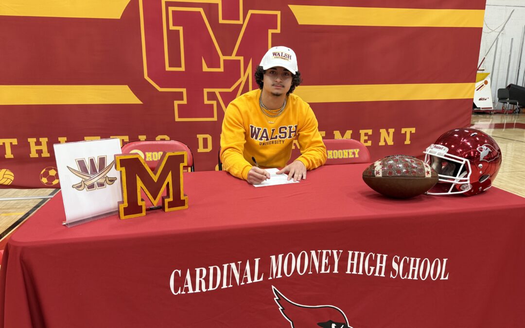 YOUNGSTOWN – After rewriting the record books at Cardinal Mooney High School, wide receiver Carlos Gomez is ready to take his talents to the next level. On Wednesday, during a signing ceremony at Cardinal Mooney, Gomez officially committed to Walsh University, where he will continue his football career as a Cavalier.