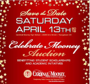 Cardinal Mooney High School has set the date for its 16th Annual fundraising Auction as Saturday, April 13, 2019. The largest fundraising event of the year will be held at the school (located at 2545 Erie St, Youngstown) between 5:30 and 11:00pm. Cocktails and Silent Auction to begin at 5:30pm with Dinner at 7:00pm. This year’s honorary Chairwoman is CMHS teacher, mentor, and Cardinals sports enthusiast, Ms. Nancy Shugart. Tickets are available by calling the school at 330-788-5007 or purchase online and view items up for bid at Celebrate Mooney Auction