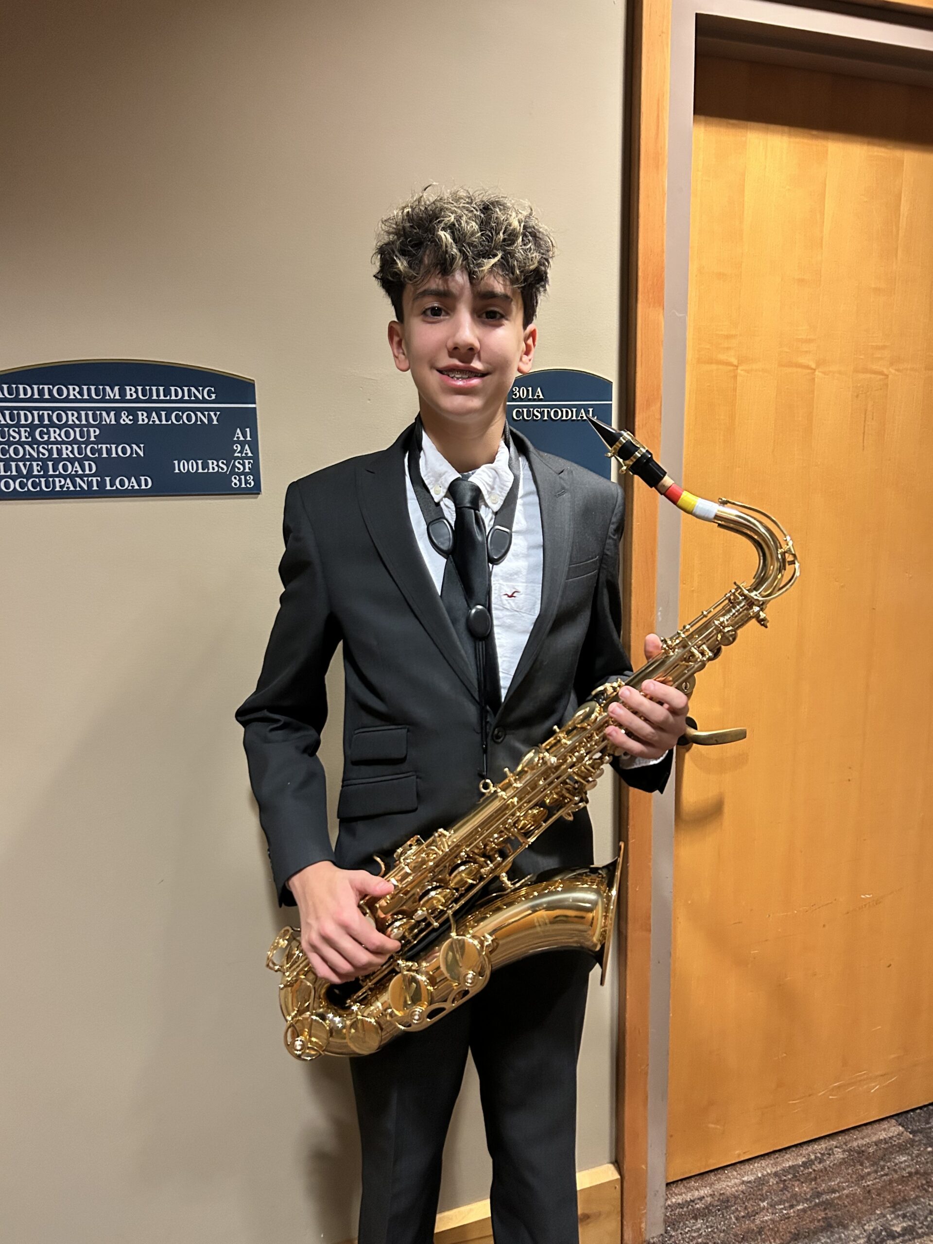 During the event, Anthony participated in rehearsals led by university faculty, took part in a master class with a saxophone professor, and had the incredible opportunity to meet, rehearse with, and perform music composed by Nicole Piunno, who wrote two of the pieces featured on the concert.