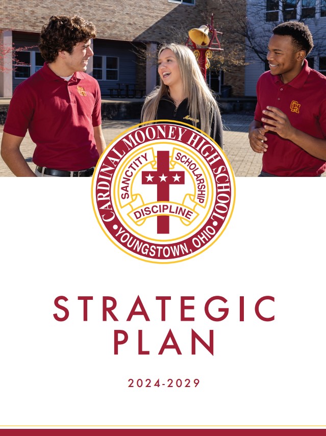 The Strategic Plan outlines the critical initiatives that will guide Mooney’s growth in the coming years. It reflects our belief in the mission of Sanctity, Scholarship, and Discipline and our vision for Mooney as the area’s preeminent Catholic high school. It strengthens our charge to provide exceptional educational opportunities while developing the complete student: focusing on faith formation, extracurricular activities, and athletics. It gives a blueprint for executing at a high level in every facet of our operations, including effective marketing and enrollment, enhanced facility planning, and sound fiscal management.