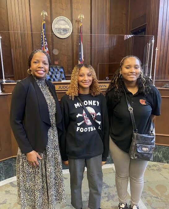 YOUNGSTOWN — Cardinal Mooney was well-represented in the Mahoning County Bar Association’s Law Week. On Monday, social studies teacher, Mr. Justin Prommersberger, accompanied freshmen Lahna Wall & Di’amyn Hugley. They were joined by Judge Carla J. Baldwin at the Youngstown Municipal Court today, for Access to Justice.